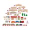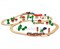Стартовый набор деревянной железной дороги Eichhorn. В набор входят деревянные рельсы из которых можно собрать разветвлённый рельсовый путь в виде восьмёрки. Набор содержит грузовой и пассажирский составы, железнодорожную платформу, мост, под которым могут проезжать поезда, много зданий, деревьев, дорожные знаки, фигурки человечков, машинки и другие элементы.