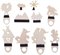 Набор фигурок (кукол), декорация для представлений в домашнем театре теней. Чтобы двигать фигурку в спектакле, фигурка имеет отверстие для пальца. Фигурки можно статично расположить на сцене. Для этого в нижней части фигурок есть магнит, с помощью которого фигурка прикрепляется к магнитной полоске экрана.