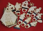 Набор фигурок и декораций для театра теней упакован в изящную фанерную коробочку в виде избушки.
