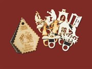 Набор фигурок и декораций для театра теней упакован в изящную фанерную коробочку в виде избушки.