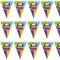Украшение интерьера в виде растяжки в форме вымпелов с изображением праздничного тортика. С такой декорацией ваш праздник будет по-настоящему ярким и незабываемым! Длина гирлянды - 360 см.