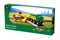 В набор деревянной железной дороги БРИО 33404 входит локомотив, два грузовых вагона с открывающимися дверцами, корова и лошадка. Животные могут легко входить/выходить из грузовых вагонов поезда и совершать на них свои прогулки на свежем воздухе.