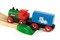 Набор деревянной железной дороги BRIO "Мой первый паровозик" создан специально для малышей". Отличительной чертой набора является мягкий домик с тоннелем, под которым будет проходить железная дорога и проезжать паровозик с вагончиками. В составе набора деревянной железной дороги BRIO (БРИО) - паровозик с тремя грузовыми вагончиками, на которые можно грузить и перевозить грузы. Специальные элементы рельсового пути позволят "съехать" паровозику с вагончиками с рельсов и продолжить своё путешествие по полу комнаты. Паровозик надо катать руками.