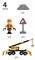 В набор входит большой подъёмный кран, фигурка человечка-дорожного рабочего, груз и дорожный знак. У подъёмного крана вращается кабина, поднимается и раздвигается стрела с магнитным держателем. Кран может поднимать любые грузы деревянной железной дороги BRIO и грузить их на грузовые железнодорожные вагоны или грузовые машины.