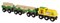 Главный элемент любой лесопилки - грузовой поезд Лесовоз. В состав поезда входит локомотив и два грузовых (двухосный и четырёхосный) вагона гружёных лесом. Груз можно загружать или разгружать с вагонов с помощью кранов с магнитным зацепом. На двухосный вагон можно загружать другие грузы деревянной железной дороги BRIO. У локомотива БРИО открывается моторный отсек, что позволит проводить его игрушечный "ремонт".