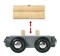 Погрузчик может вращаться на 360 градусов и с помощью своей стрелы с магнитным захватом загружать грузы в вагоны деревянной железной дороги БРИО.
