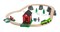 Из деталей, входящих в набор "Загородная лошадиная ферма", можно собрать железную дорогу со станцией для приёма лошадок. Железнодорожный состав БРИО работает на батарейках и может сам двигаться по рельсам железной дороги. В вагон поезда помещается одна лошадка БРИО.