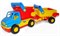 Функциональный автомобиль-самосвал с полуприцепом на больших колёсах из серии КонсТрак будет незаменим на любой игрушечной строительной площадке. У самосвала и полуприцепа можно поднимать-опускать кузов, полуприцеп можно отцепить от самосвала.