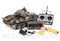 Деталировка: Модель танка Panther в летнем камуфляже выполнена с высокой степенью детализации, с навесным оборудованием, фигуркой командира и наклейками. Оборудована пневматической пушкой с отдачей с технологией Hop-Up (закручивание снаряда для более точной и дальней стрельбы), способной поразить противника на расстояние от 20 до 30 метров. Ведение танкового боя: В бою могут принимать участие до 3-х танков, работающих на разных частотах. Частоты (27 Мгц, 40 МГц и 49 Мгц) предварительно устанавливаются на танке и пульте управления. Танк оснащён автоматическим магазином на 40 шариков. | ||