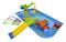 Кроме этого, игровой набор содержит элементы водных каналов, машинку и катер, а также грузовой подъёмный кран, с помощью которого можно загружать грузы на корабли и машинки. машинки по специальному мостику могут выезжать за пределы водного мира и продолжить свой путь по полу или земле (при игре на улице).