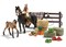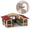 Набор Schleich включает необходимый корм. Фигурки лошадок могут находиться внутри конюшни или пастись рядом в специальном загоне, границы которого регулируют в зависимости от размеров Вашего табуна лошадей.
