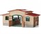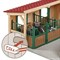 Конструкция конюшни легко собирается и разбирается. Здание конюшни можно трансформировать в любые другие строения. Конюшня очень большая, состоит из просторного помещения, поделенного на отсеки для размещения лошадей. Конюшня легко проветривается, в ней есть много окон и дверей, на крыше открывающиеся мансардные окна, чтобы внутрь мог проникать солнечный свет. У конюшни открываются окна, двери. Большое количество поилок и кормушек можно навешивать в различных местах конюшни и на перилах загона. При необходимости, из конюшни можно собрать гараж для джипа и прицепа для перевозки лошадей.