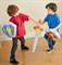 Надувные меч и щит окажутся очень кстати при проведении "рыцарских турниров" между мальчишками и девчонками. Главное, чтобы под рукой оказалось именно пара наборов, чтобы было чем обороняться от нападающего...