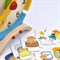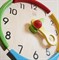 В комплекте к часам идут 12 карточек. На девяти из них нарисованы сюжеты обычных повседневных дел. Три карточки свободны. На них можно нарисовать свои сюжеты, обычные для Вашей семьи. При игре в часы в верхнюю их часть устанавливается одна из карточек. Ребёнок должен перевести стрелки часов, установив время, в которое эти сюжеты происходят.
