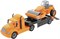 Большой автомобиль трейлер с дорожным катком - незаменимая техника при строительстве игрушечных дорог. Каток может заезжать и съезжать с трейлера по специальным опускающимся сходням. Прицеп-трейлер можно отсоединить от грузового автомобиля.