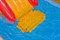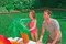 Большой надувной бассейн - игровой центр Intex 57131 с ярким, привлекательным рисунком из мультфильма "Король Лев", с горкой и фонтанчиком. Вокруг надувной горки "растут" две пальмы. Если присоединить шланг с водой к игровому центру, то из пальм будут бить освежающие фонтанчики.