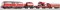 Аналоговый стартовый набор железной дороги PIKO. Набор состоит из дизельного локомотива BR 218 с составом из трёх грузовых вагонов пожарного назначения, автомобиля (грузового или пассажирского в зависимости от комплектации) и расширенного стартового набора рельсового пути со стрелкой.