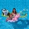 Надувные водные ходунки в виде различных забавных животных с сидением и со спинкой. Круг изготовлен из полупрозрачного винила.
