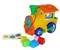 Паровоз везёт груз – разноцветные формочки-вкладыши. Чтобы они оказался внутри, нужно протолкнуть их в отверстия соответствующей формы.