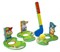 Играем в гольф прямо в ванной! В игровой набор входят три плотика с лунками для мячика и клюшка для гольфа. Малышу необходимо загнать клюшкой мячик в лунки на плотиках.