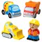 Игрушки для ванны Машинки брызгалки - В набор входят 3 машинки брызгалки и одна фигурка человечка. Элементы набор упакованы в сетчатый мешочек, который можно прикрепить с помощью присосок к кафельной плитке ванной комнаты.