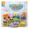В набор входят 3 машинки брызгалки и одна фигурка человечка. Элементы набор упакованы в сетчатый мешочек, который можно прикрепить с помощью присосок к кафельной плитке ванной комнаты.