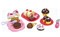 Набор с десертами в стиле Минни будет прекрасным дополнением к игровой ситуации с приглашением гостей к столу и чаепитием. Маленькая хозяйка будет рада создавать игровые ситуации из любимого мультфильма "Клуб друзей Микки Мауса" вместе с персонажами Минни и Дейзи.