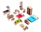 В комплект игрового набора включён набор мебели для 5 комнат: спальня, гостиная, ванная комната, кухня и детская спальня.