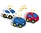 Электронная мини-автомодель представлена в трех вариантах исполнения - синий полицейский автомобиль, белый автомобиль Скорой помощи, красный автомобиль - пожарная машина.