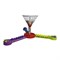 В игру "Треугольный баскетбол" могут одновременно играть сразу три игрока. У каждого игрока будет своя катапульта, которая бросает шарики/мячи в баскетбольную корзину, расположенную в центре игры. Шарики - трёх цветов, по 6 штук каждого цвета. Каждый игрок с помощью механического счётчика очков, может подсчитывать количество заброшенных в корзину мячей.