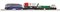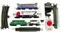 Аналоговый стартовый набор железной дороги PIKO. Набор состоит из дизельного локомотика BB 67000 с составом из трёх грузовых вагонов с грузовиком-фурой на платформе, а также расширенного стартового набора рельсового пути со стрелкой.