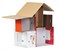 Набор включает в себя пластиковую Safe-пилу Makedo, с помощью которой можно безопасно пробивать отверстия и резать картон, клипсы и петли для быстрого и надёжного соединения деталей, буклет с инструкцией по сборке домика и наклейки для его украшения и придания законченного вида.