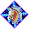 Для создания яркой сияющей картины необходимо освободить клеящий слой на одном из фрагментов рисунка и равномерно посыпать его блестками нужного цвета. Таким же образом декорировать все фрагменты рисунка с клеящим слоем, используя блестки разных цветов. Излишки блесток стряхнуть. Декорирование рисунка заканчивается прикалыванием разноцветных пайеток к основе.