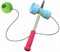 Возможны 2 варианта игры: либо мячик должен попасть на плоскую часть "бойка" молотка, либо его нужно насадить на острую часть ручки (в шарике есть отверстие).