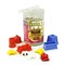 В набор входит упаковка НеоПеска, формочки для постройки замка, а также глазки, ручки и кепочка для человечков, которые могут быть слеплены из песка.