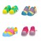 В ассортименте: тапки, ботинки и ботинок (один). Ботинок состоит из трёх подвижных частей. Он не ходит, а смешно ездит, двигаясь "как ботинок при ходьбе".