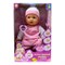 Функциональная кукла-младенец с соской работает от батареек. Она умеет смеяться и сосать соску, издавая характерный звук, как настоящий ребенок. Если нажать кукле на животик, она выплюнет соску. Вот такой непослушный ребенок! У каждой девочки теперь есть прекрасная возможность играть с таким милым малышом, примеряя на себя роль маленькой мамы.
