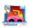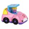Розовая машинка для девочек с кубиком с человечком внутри. Двигается вперёд при нажатии на кубик сверху. Фигурка человечка - крутящаяся. Машинка может проигрывать забавную мелодию.