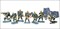 Бронепехота - серия коллекционных функциональных моделей, не требующих применения клея при сборке. Все модели без труда собираются по схемам в течение нескольких минут. Благодаря подвижности шарниров модели можно придать наиболее эффектное положение. Для игры можно использовать боевые машины из серии ROBOGEAR.