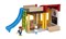 Из элементов набора Школа BRIO можно собрать небольшое здание в разных вариантах: либо одноэтажную школу с двумя помещениями, либо двухэтажное здание с терассой.