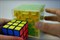 Вращая прозрачный куб в руках нужно провести металлический шарик от старта к финишу.