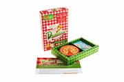 Игровой набор выполнен в очаровательном итальянском стиле. Он включает как привычные прямоугольные карты с заказами, так и оригинальные круглые карточки — это подносы с различным количеством кусочков пиццы на них. Помимо сыра и оливок на пиццах в разных сочетаниях присутствуют помидоры, грибы и перцы — по два ингредиента на каждой.
