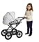 Коляска имеет съёмную мягкую люльку, корзину для вещей, подножку, ручку. Куклу можно не только положить в люльку, но и посадить на сидение, в которое можно трансформировать люльку. Кроме этого, люльку можно снять с коляски и использовать как переноску. Люлька имеет боковые карманы.