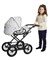 Коляска имеет складной металлический корпус, широкие колёса, откидной капюшон, корзину для вещей, ножной тормоз, ручку. Люлька имеет боковые карманы. Положение люльки на раме коляски можно изменять.