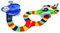 Разноцветные элементы трека соединяются между собой, создавая причудливую гоночную трассу практически любой конфигурации. Машинка, входящая в комплект набора, может сама двигаться по треку. У машинки светятся фары. Забираясь на верхний уровень эстакады машинка разворачивается и спускается по серпантину вниз. Благодаря переключающейся стрелке можно менять направление движения машинки. Количество деталей в наборе: 134