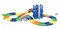 Разноцветные элементы трека соединяются между собой, создавая причудливую гоночную трассу практически любой конфигурации. Машинка, входящая в комплект набора, может сама двигаться по треку.