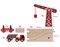 В состав набора входят элемент дороги, подъёмный кран, грузовой вагон и машинка-самосвал. Набор с краном и дорогой может стать отличным дополнением к наборам железных дорог Eichhorn, Brio, Roys и другим.