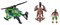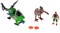 В комплект набора входит фигурка динозавра (двигающаяся), фигурка охотника, вертолёт с утановленной на ней пушкой. Пушка может стрелять игрушечными снарядами. Фигурка динозавра и охотника - двигающиеся. Охотника можно посадить в вертолёт.