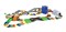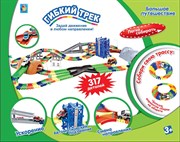 Разноцветные элементы трека соединяются между собой, создавая причудливую гоночную трассу практически любой конфигурации. В набор входят две машинки и множество игровых элементов гибкого трека. Количество деталей в наборе: 317