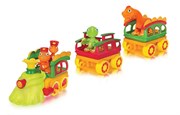 Игрушка серии "Поезд динозавров" состоит из трёх отдельных наборов из которых можно собрать поезд, состоящий из паровоза и двух вагончиков. В поезд и вагончики можно сажать фигурки динозавров - Бадди, Кондуктор, Тини и Неда, которые входят в наборы. У паровоза - подвижная труба. Дополнительно, в наборы включены карточки динозавров.